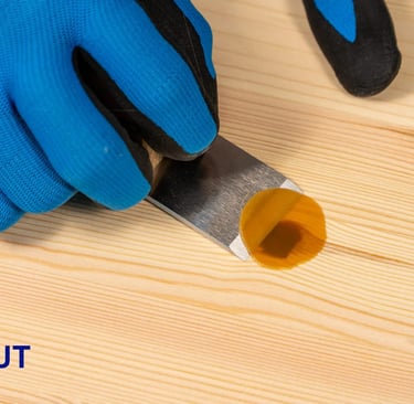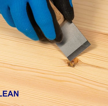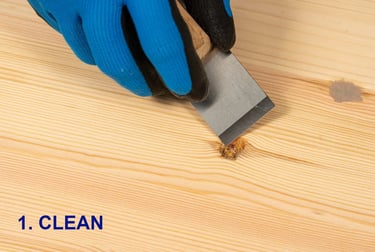 Noņemiet putekļus un sveķus no koksnes defekta.