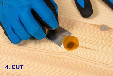 Noņemiet lieko aizpildītāju ar aizpildītāja griešanas instrumentu.